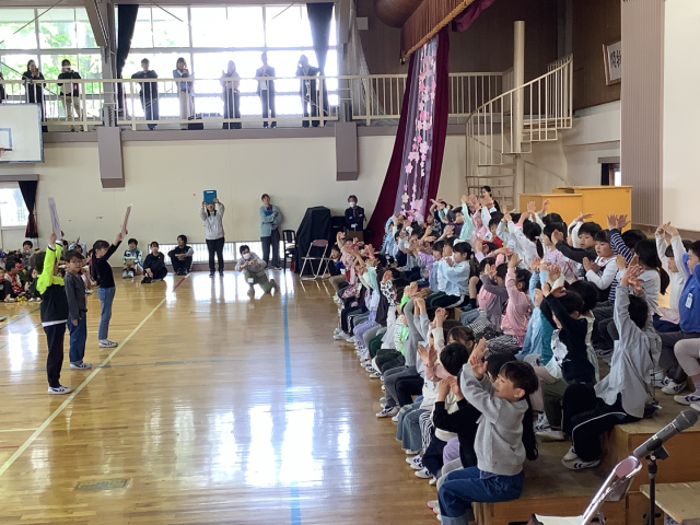 そして4年生。1年生の担任の先生たちにまつわる 〇✖クイズ!1年生、たくさん正解していました!