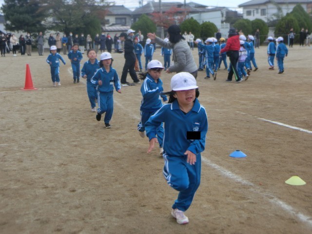 1年生「ゆうきりんりん」 まるで 冬?のような寒空のもと、持久走記録会を行いました。 「この寒さは、みんなのパワーを引き出してくれるもの、この冷たい風は、みんなを後押ししてくれるもの!」 と先生と保護者の皆様からの応援を受け、寒さに負けず600m走った1年生! 「負けないぞ!」と必死で真剣な表情がたくさん見られました。 冷たい風に負けず、最後まで頑張って走り切った子どもたち、また一つ成長しました。 寒い中、温かい声援と拍手を送ってくださった保護者の皆様、ありがとうございました。 +7