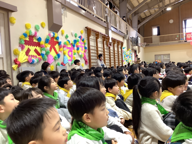開成小の 上級生、み~~~~~んなが 1年生の入学を喜んで、
