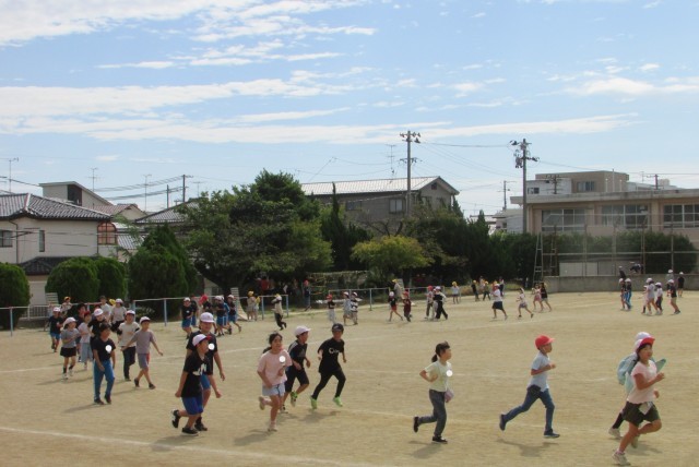 10月より持久走週間がスタート。業間の時間に5分程度、目標に向かって自分のペースで走ります。8日の今日は、中学年の日。お天気も回復し、たくさんの子どもたちが元気に走っていました。(中には、先生の姿も・...