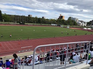 50m走の選手を始め、男女リレー、ハードル走、100m走、走り幅跳び、走り高跳び、ボール投げ、長距離の各種目の選手たち全員が、これまでの練習の成果を発揮し、全力で頑張りました!写真は、応援席から撮影したので、遠くからですが、どうぞご覧ください。