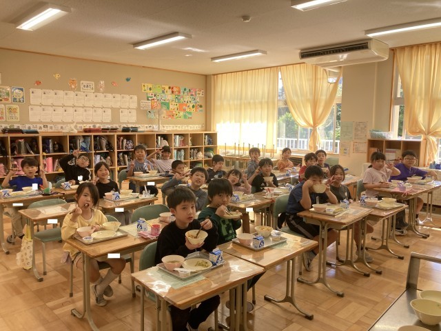 今日、10月10日は「目の愛護デー」です。今日の給食には、目によい栄養(アントシアニン)がたくさん含まれているブルーベリーゼリーが提供されました。