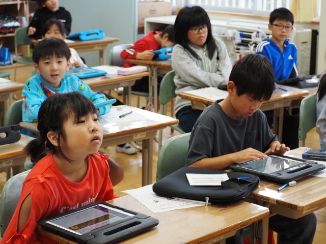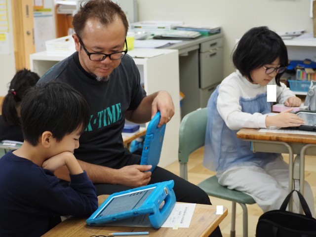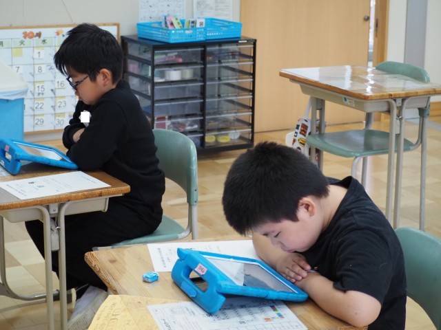 子どもたちはタブレットの使い方にも慣れ、スムーズに模擬体験を行っているようでした。