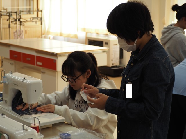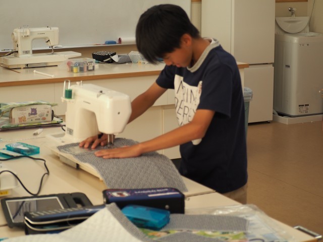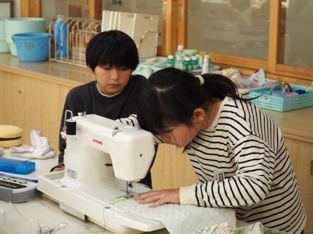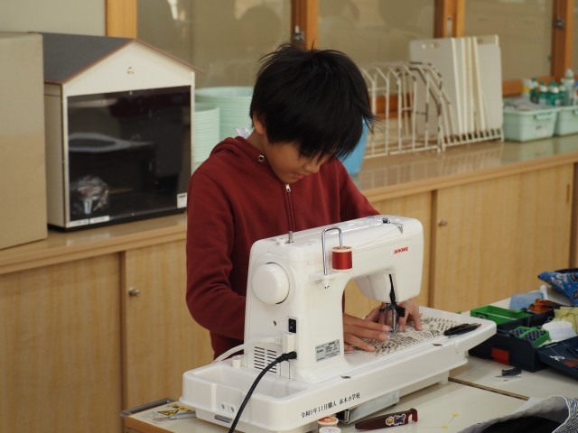 5年2組は、家庭科でミシンを使って製作しようの学習でウオールポケットづくりに挑戦していました。初めてのミシンの学習に戸惑いながらも協力しながら熱心に取り組んでいました。