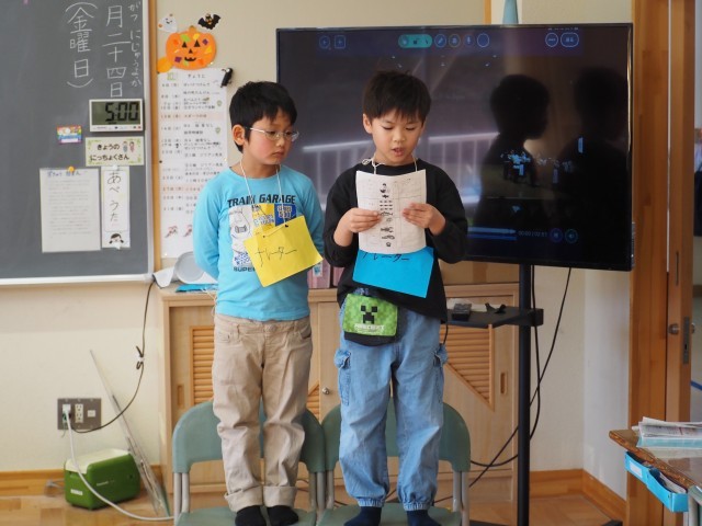 2年1組は、明日の赤木の日学びの発表会に向け、最終リハーサルを行っていました。音読では、役になりきって上手に発表していました。子どもたちの発表をぜひ見に来てください。