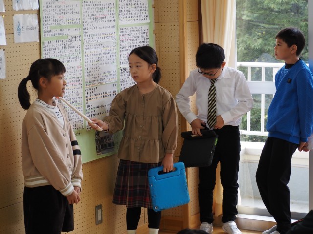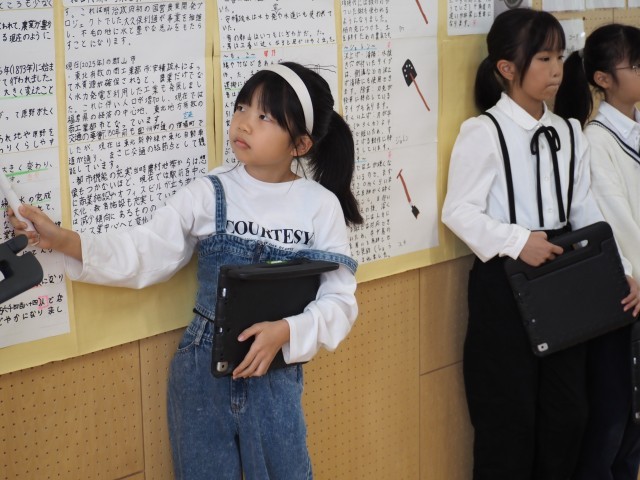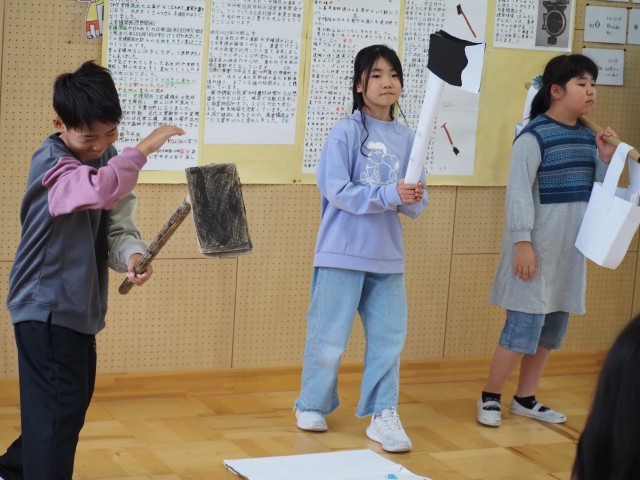 4年生は、「郡山市の歴史 ~安積疏水~」の発表です。安積疏水が完成するまでを劇で発表し、後半は、各グループごとに調べたことを発表しました。劇の小道具を手作りで準備したり、聞いている人にわかりやすく伝えるために、まとめも詳しく書いたりしました。とても上手な発表でした。