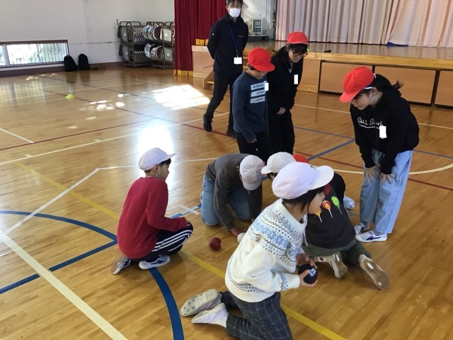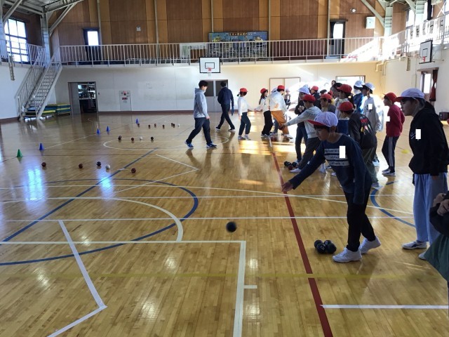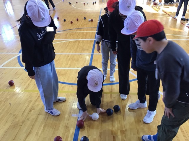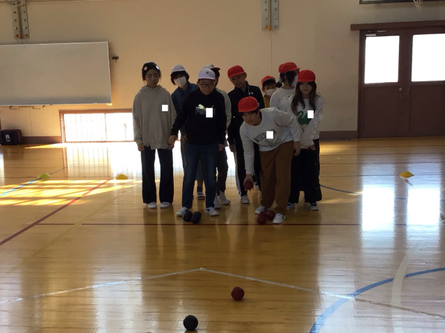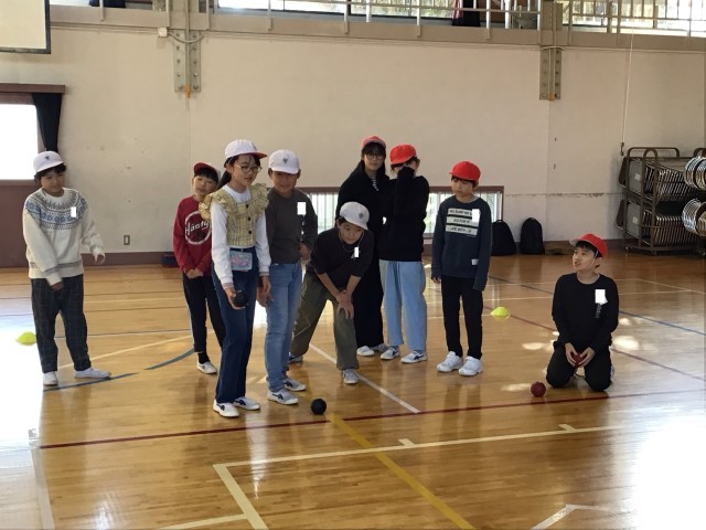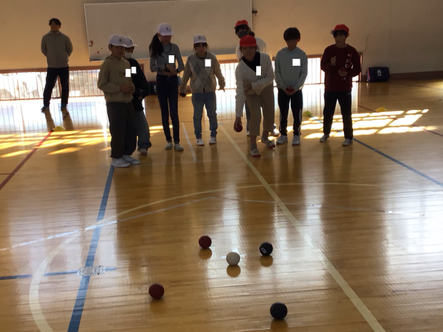 5年生も講師の先生をお招きし、ボッチャ体験を行いました。さすが高学年、ゲームを重ねるごとにチームでどこに投げるかやどのボールを狙うかなど、作戦を立てながら取り組んでいました。みんなとても楽しそうに活動していました。