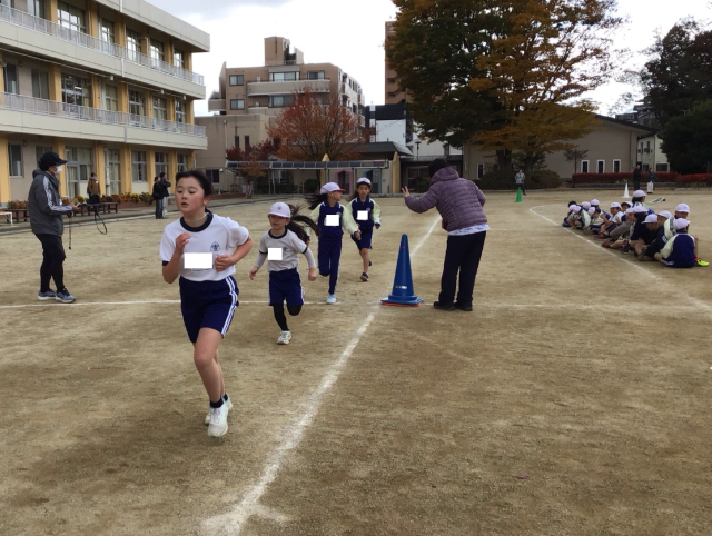 昨日、3・4年生の持久走大会がありました。中学年は、男女ともに校庭4周(800M)を走ります。自分のベストタイム更新を目指し、全力で頑張りました。