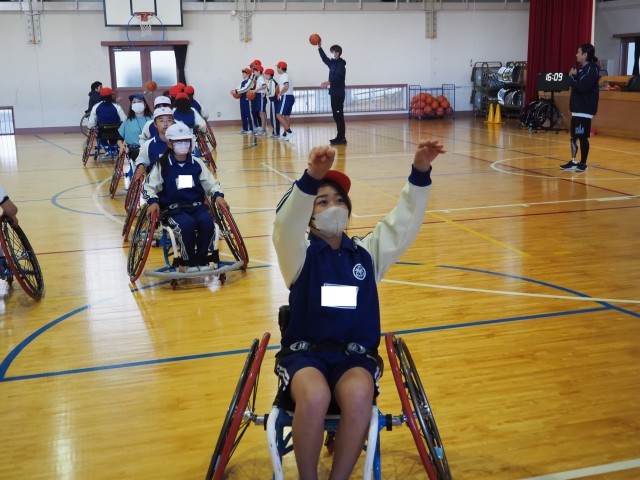 鬼ごっこの後には、シュートの練習を行いました。下半身が使えないため、ボールが思うように投げることができなかったようですが、真剣の練習に取り組んでいました。