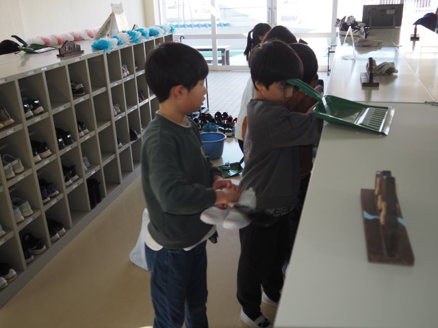 昇降口、くつ箱もみんなできれいにすることができました。冬休みおうちでも大掃除があるかと思います。お手伝いをしておうちもきれいにして新年を迎えることができるといいですね。