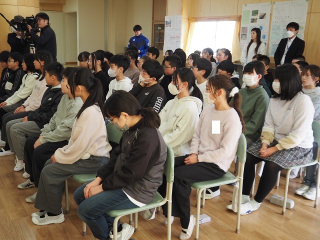 福島大学で学んでいる留学生をお招きし、ハンガリー出前講座を行いました。講座を始める前に、代表のお友達が赤木小学校を紹介しました。