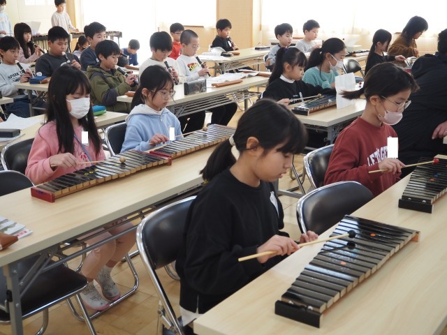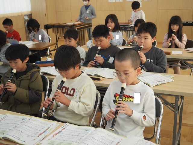 3年生は、音楽で「パフ」の演奏を行っていました。楽器を分担し、リズムに合わせて演奏できるよう丁寧に取り組んでいました。回数を重ねるごとに、演奏も上達してきました。さらによい演奏を目指して頑張りましょう。