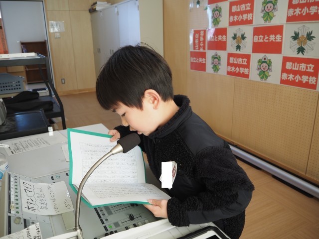 3学期のめあて発表、最終日は2年生代表のお友達です。冬休みハワイアンズやおじいちゃん・おばあちゃんの家に行ったことなどが思い出に残っていること、そして、3学期は、算数や友達に輪を広げることを頑張ることを上手に発表しました。