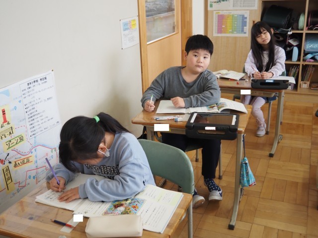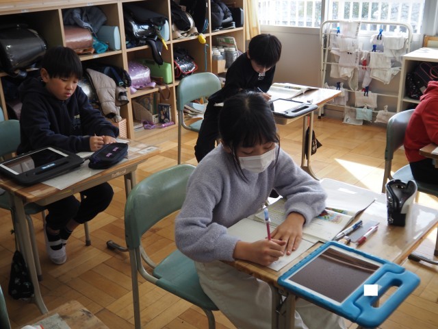 3年2組は、国語で「書き表し方を工夫して物語を書こう」の学習を行っていました。教科書に書かれた地図を手がかりに『たから島のぼうけん』の物語を書くようです。どんな物語が完成するのか楽しみです。