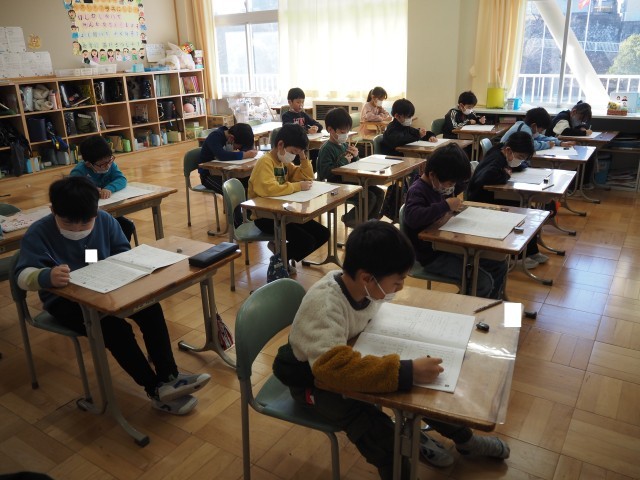 本日2校時に国語の学力テストを行いました。これまでの学習のまとめとなるテストです。みんな集中して取り組んでいました。