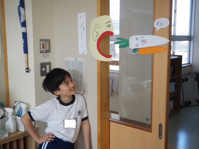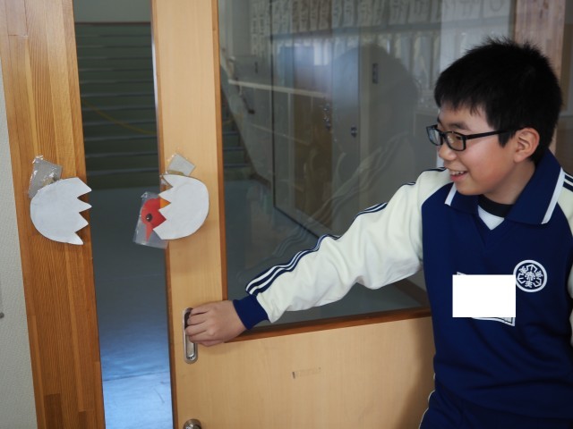 5年2組は、図画工作で「笑顔が生まれるしかけ」の制作活動を行っていました。友達とアイディアを出し合いながら熱心に活動していました。完成した作品がありますので紹介します。