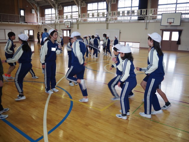 制限時間の3分間をフルに使って、跳び続けていました。みんなで一つの目標に向かって、気持ちを合わせて頑張る姿は、頼もしくもあり、とても輝いて見えました。