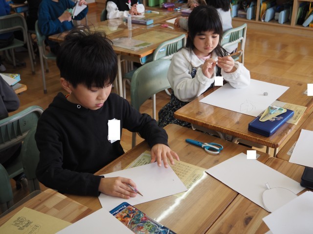 2年2組は、図画工作で「たのしく うつして」の制作活動を行っていました。みんな自分の思いを膨らませながら、作品作りに没頭していました。