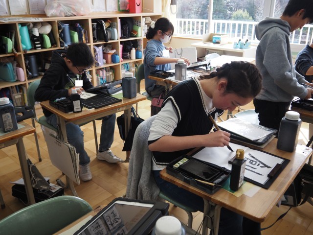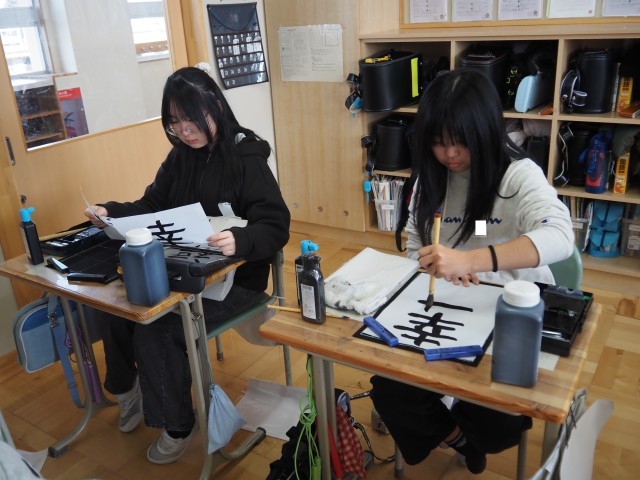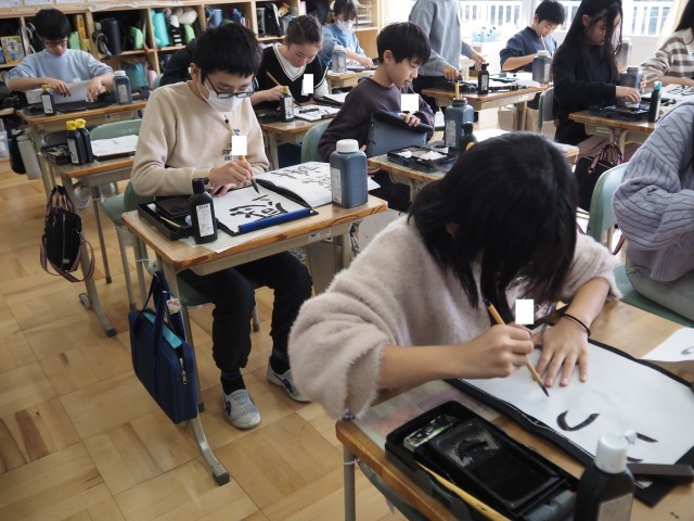 6年2組は、書写の学習を行っていました。書写の学習も6年生のまとめになりました。今日は、自分の好きな文字を書いていました。「感謝」「ありがとう」「幸せ」「友達」等の言葉が選択されていました。