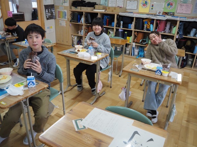 子どもたちに人気のココア揚げパンは、やはりメニューに入ってきました。残り少ない小学校の給食、しっかり味わって食べてください。6年2組のリクエスト献立は、3月12日になります。