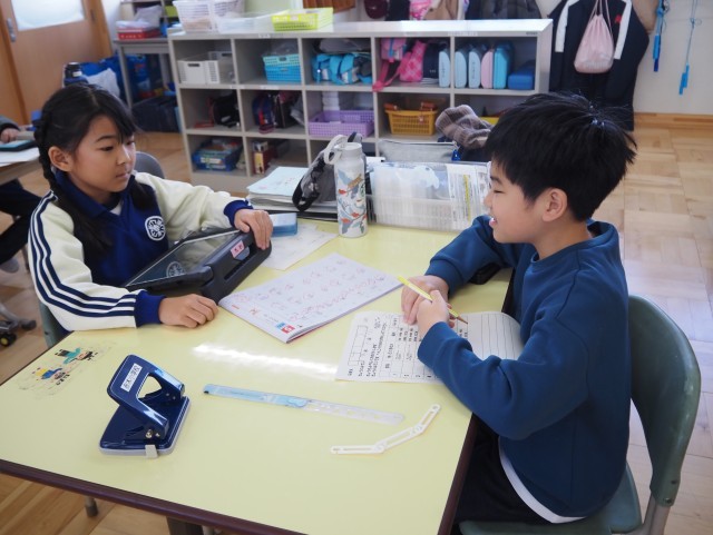 すみれ学級の学習の様子です。プリント、ドリル、タブレット等を使い、各自の課題に沿って、学習が進められていました。みんな集中して取り組んでいました。