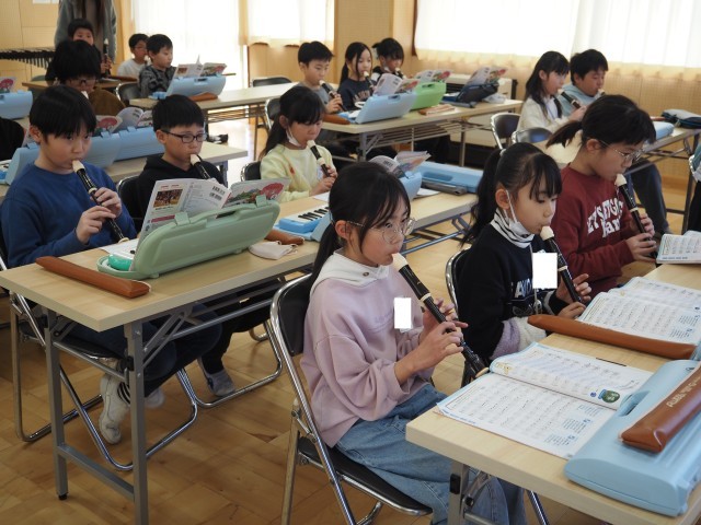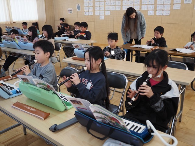 3年生は、音楽の学習をしていました。音楽室を訪問した際には、リコーダーで「エーデルワイス」の演奏練習をしていました。しっかり楽譜を見て、指使いに注意しながら演奏していました。