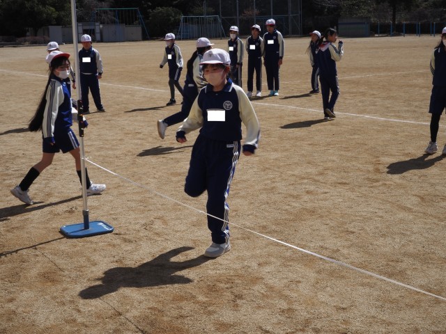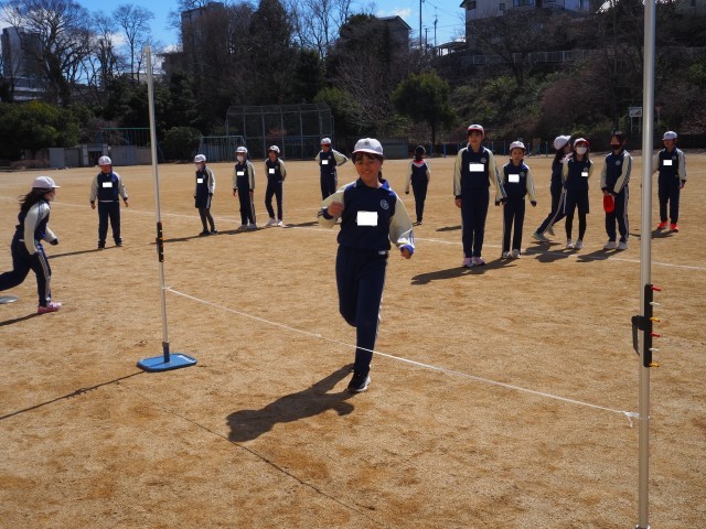 4年1組は、体育で「走り高跳び」を行っていました。今日は、自分の踏み切り足を見つけるため、試しに左右どちらからも跳んでいました。自分の踏み切り足は、見つかったでしょうか?