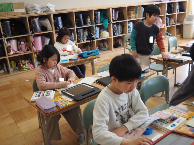 2年2組は、アンパンマンイラストコンテストを行っていました。みんなそれぞれ工夫を凝らし、イラストを完成させていました。