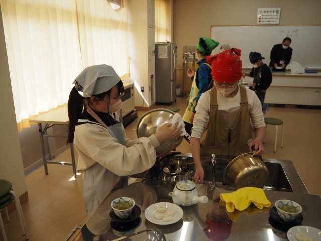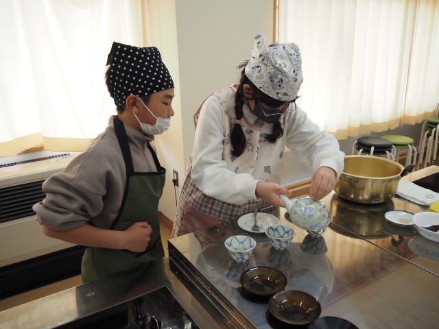 5年1組は、月曜日の2組に引きついでお茶会を行いました。2組同様、白玉作りとお茶を入れる学習です。役割分担をしながら、上手に作業を進めていました。