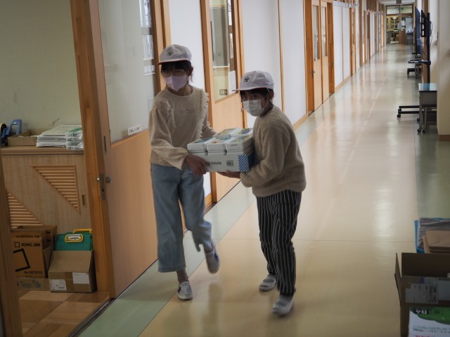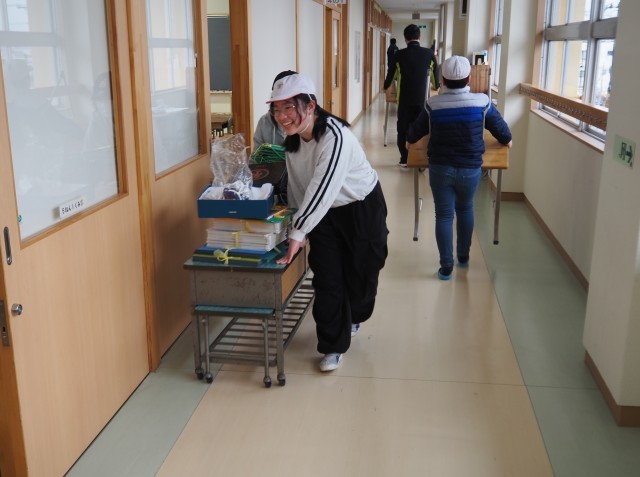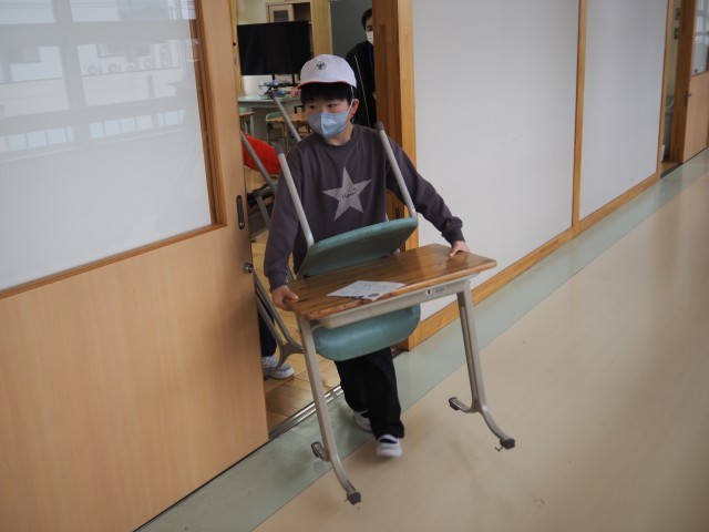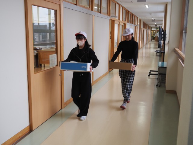 今日は、5年生の力を借りて、次年度に向けた教室移動を行いました。次年度の人数に合わせ、机やいすを運んだり、必要な物品を運んだりしました。
