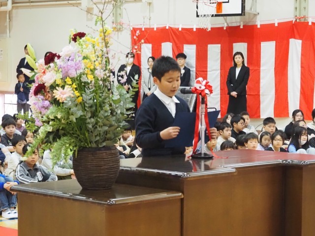 6年生の代表児童が、お迎えの言葉を堂々と発表してくれました。早く赤木小学校になれ、力を思う存分発揮してください。