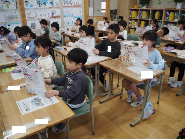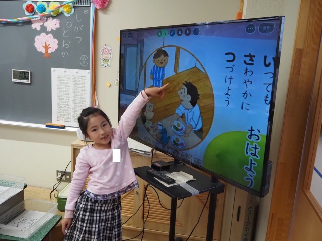 1年1組は、道徳で「あかるい あいさつ」の学習を行っていました。教科書や大型テレビを使いながら、あいさつの大切さを学んでいました。来週から、元気なあいさつをして登校してきてください。