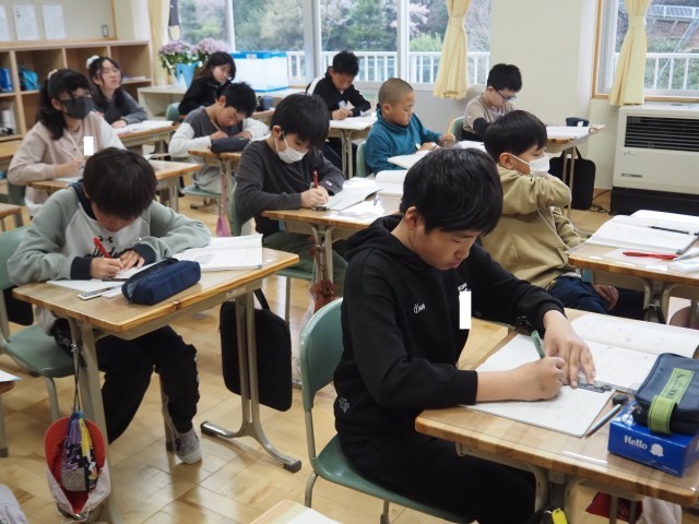 6年1組は、算数で「対称な図形」の学習を行っていました。今日は、線対称な図形の性質について学んでいました。しっかり話を聞き、集中して学習に臨んでいました。