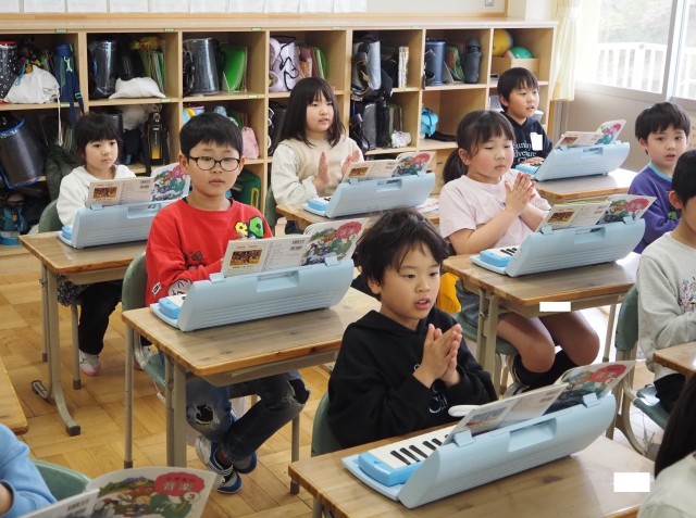 3年2組は、音楽でリズム遊びをしていました。パートに分かれ自分の担当のリズムを手拍子で表現していました。