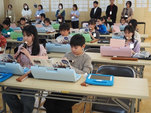 5年1組 音楽「音の重なりを感じ取ろう」の学習の様子です。