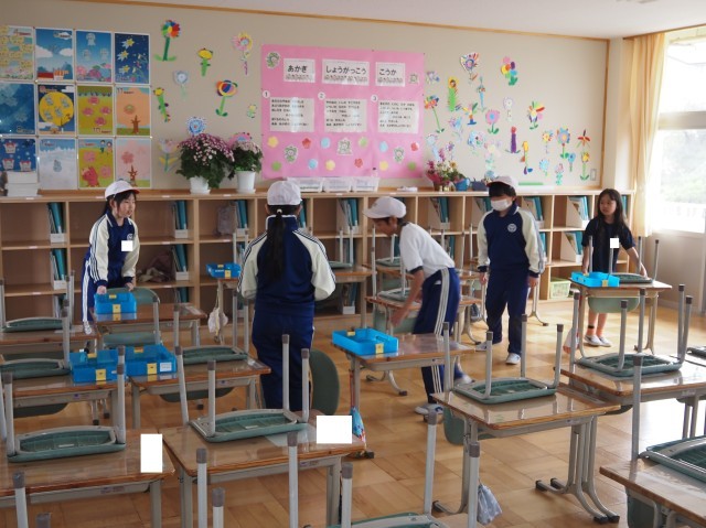 5年生は、1年生教室を、6年生は、みんなが使う昇降口や家庭科室の清掃をしいました。高学年のみなさんの力、ありがたいです。これからもよりよい学校目指して、よろしくお願いします。