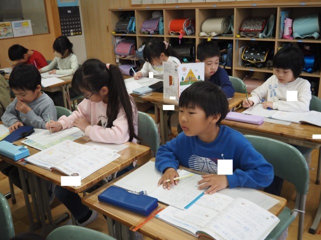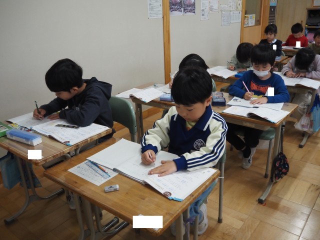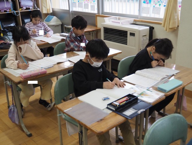 2年1組は、算数「たし算のひっさん」のが学習を行っていました。教科書に書かれている問題に意欲的に取り組む姿が見られました。