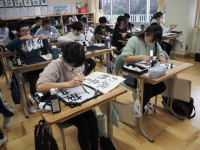 友達の考えも参考にしながら、練習問題に取り組みました。作図が終わると、先生のところで、自分の作図が合ているかを確認していました。