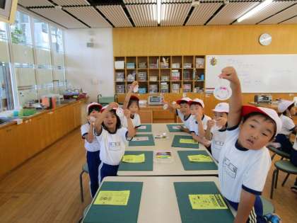 ○○先生の声で、実験成功です。どんな実験だったか、1年生に聞いてみてください。