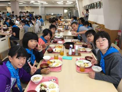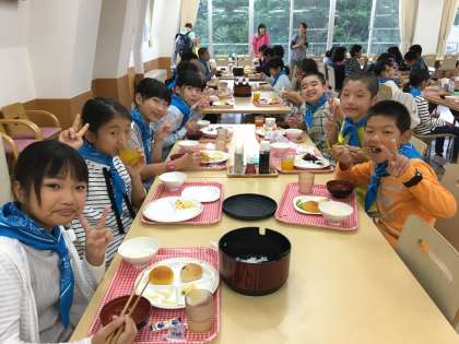 自然の家では、班で協力してご飯を食べました。後片付けも、机の上だけではなく床などの汚れがないかも確認し、次の人が気持ちよく使えるようにしていました。みんなでワイワイ食べた食事タイムも大切な思い出です。