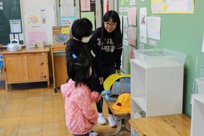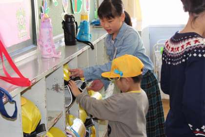 委員会の子が元気な声で「おはようございます」と挨拶をします。挨拶をされた子も、した子もとても良い気持ちになります。今日も一日、良い日になりそうです。朝の一年生との交流も続いています。今週からは「たんぽぽ」組さんにも交流の輪が広がっています。