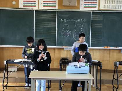 今日は、音楽で「茶色の小びん」の発表会をしました。