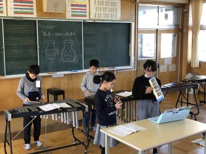 鍵盤ハーモニカやリコーダーの他に、木琴と鉄琴を使って演奏をしました。