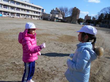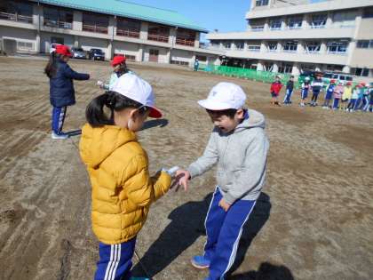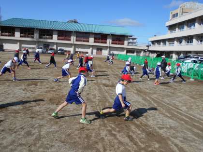 赤木小学校に戻ってきてから、はじめての校庭での体育です!