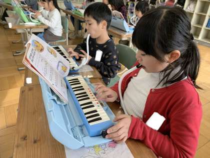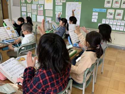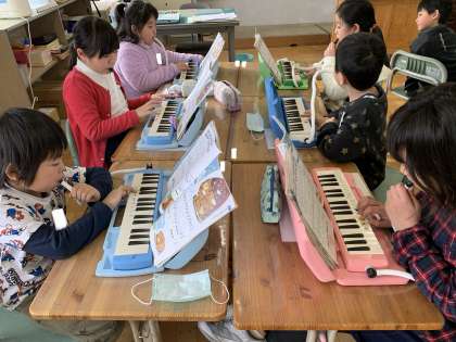 音楽ではこぐまの二月の曲を、3つのパートに分けてグループごとに演奏してみました。