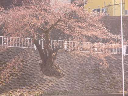 4月14日、校庭の『虎桜』の枝の先が白っぽく・・・