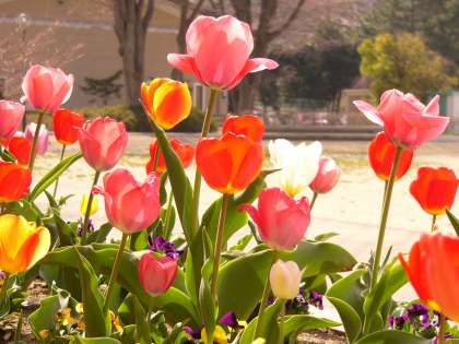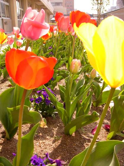 昨年末ごろ、用務員さんと環境委員さんが一緒に植えた球根です。