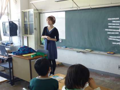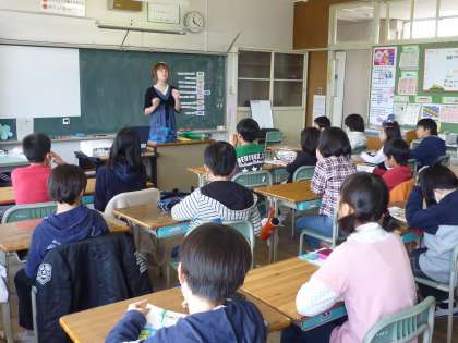 今日の英語は、子どもたちの大好きなベッキー先生と一緒です。自分のネームカードを作る学習をしました。カードの表に英語で名前を書きました。裏には、好きな色、好きな動物、好きな季節を英語で書きました。