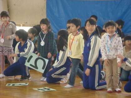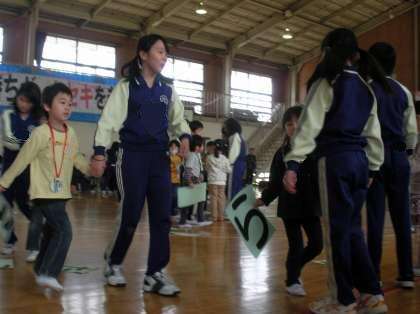 ゲームの最後には、ペアになった6年生から、「あくしゅ」「おんぶ」「ひこうき」の中で1年生が希望する触れ合いプレゼントをしました。