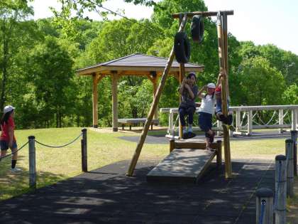 冒険の森は、会津地方の伝説「足長・手長」の住む森をイメージして遊具が作られているそうです。
